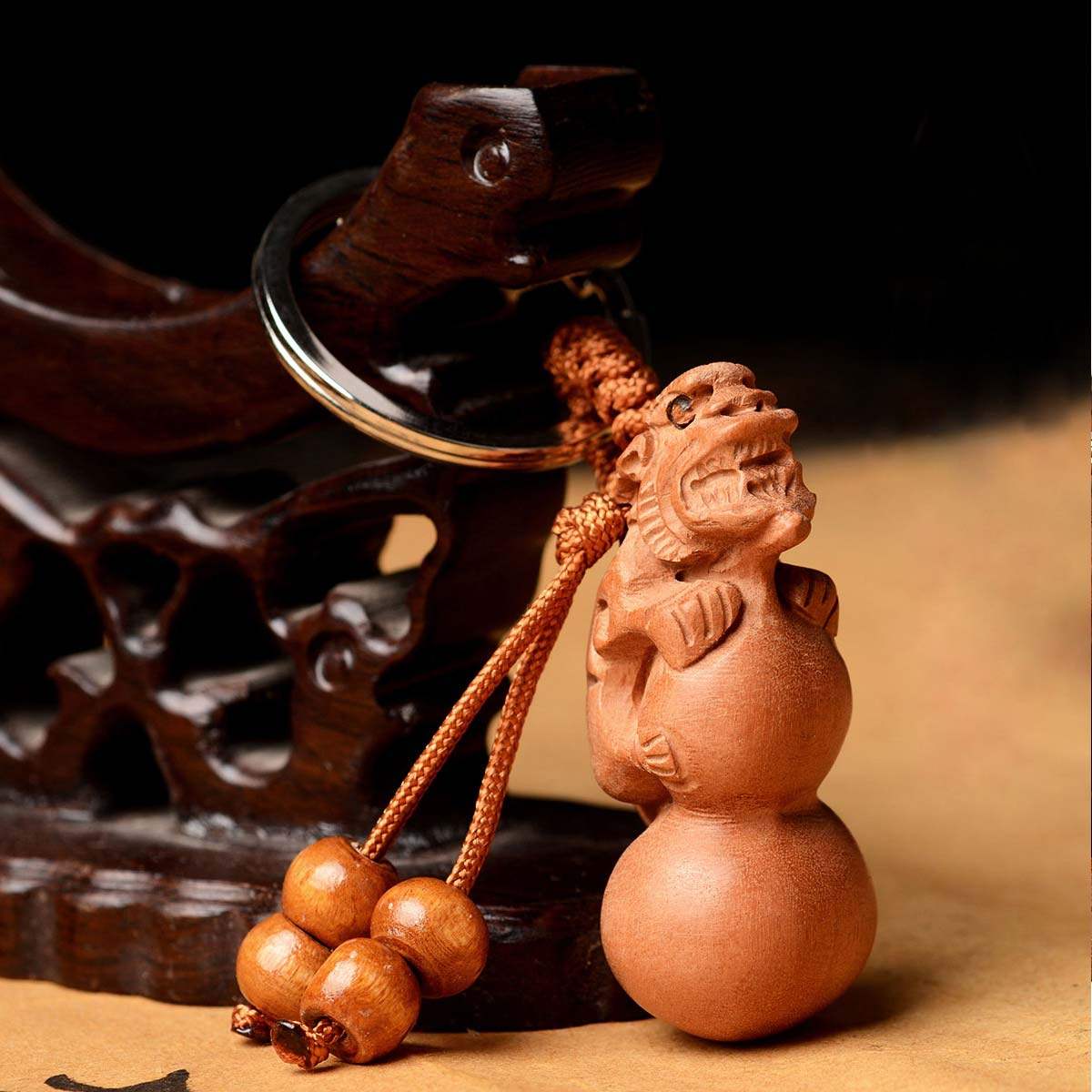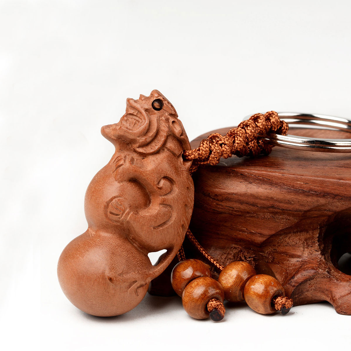 风水阁桃木貔貅葫芦钥匙扣 K9628