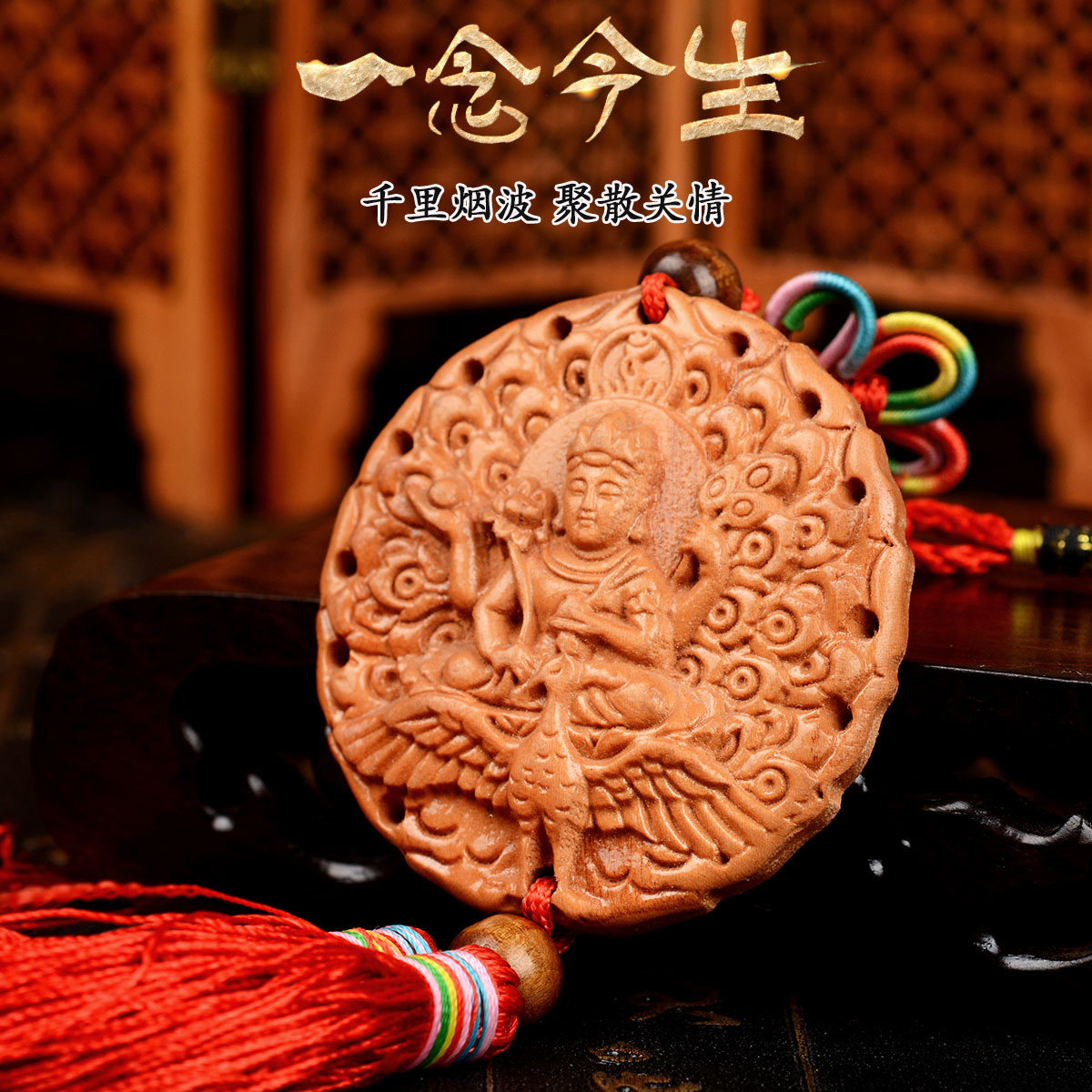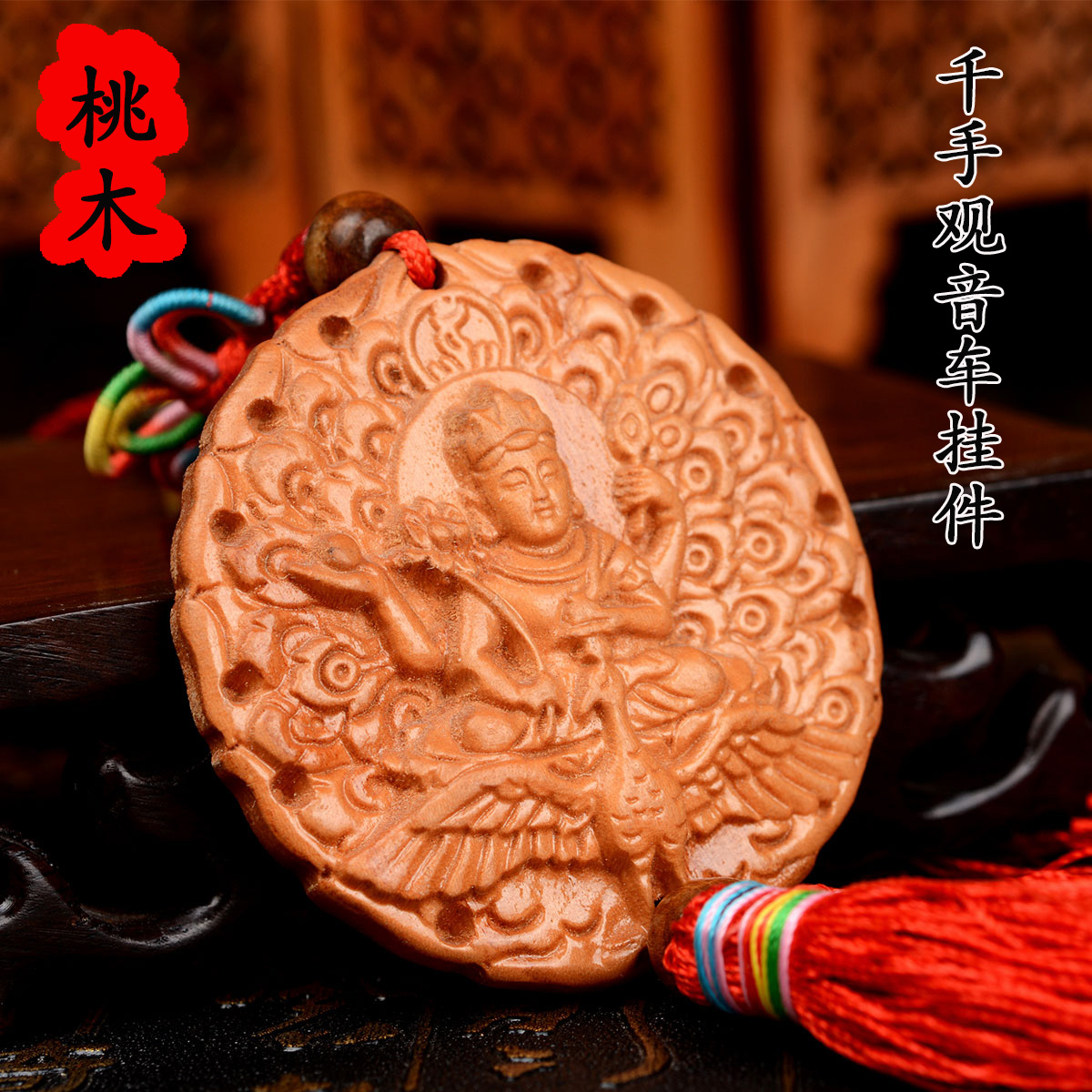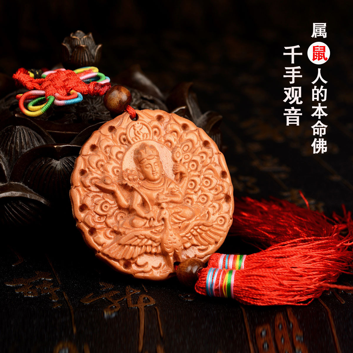 风水阁桃木生肖鼠挂件3907