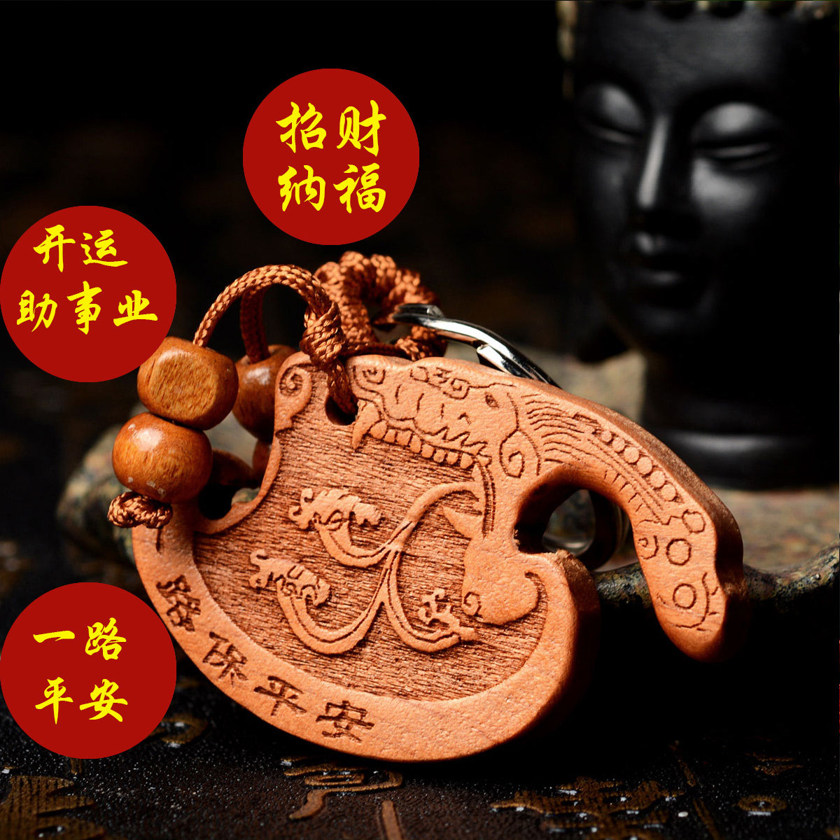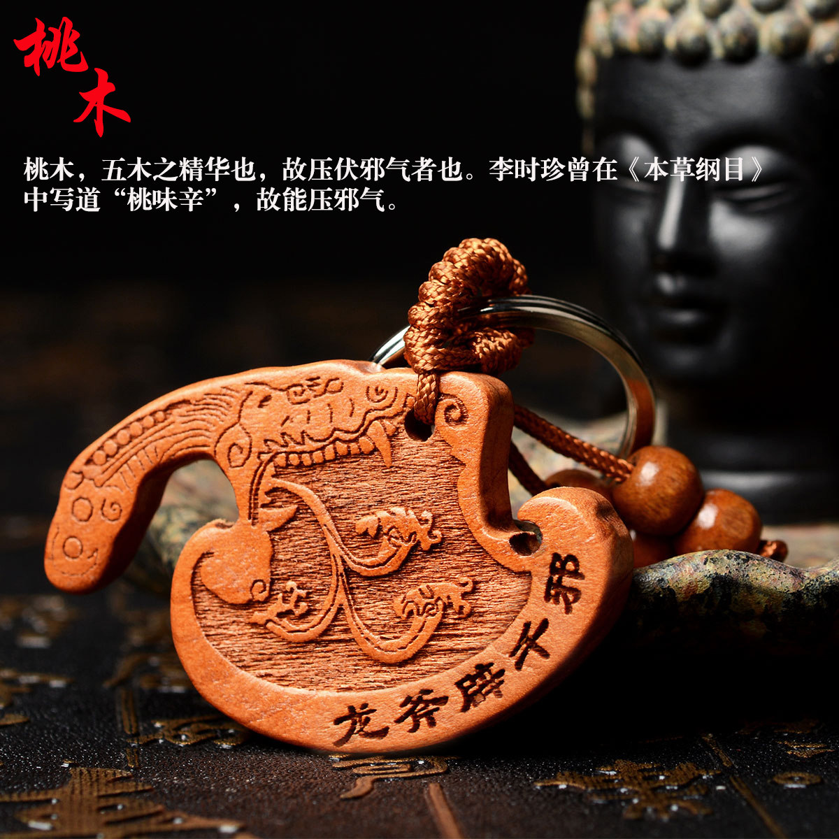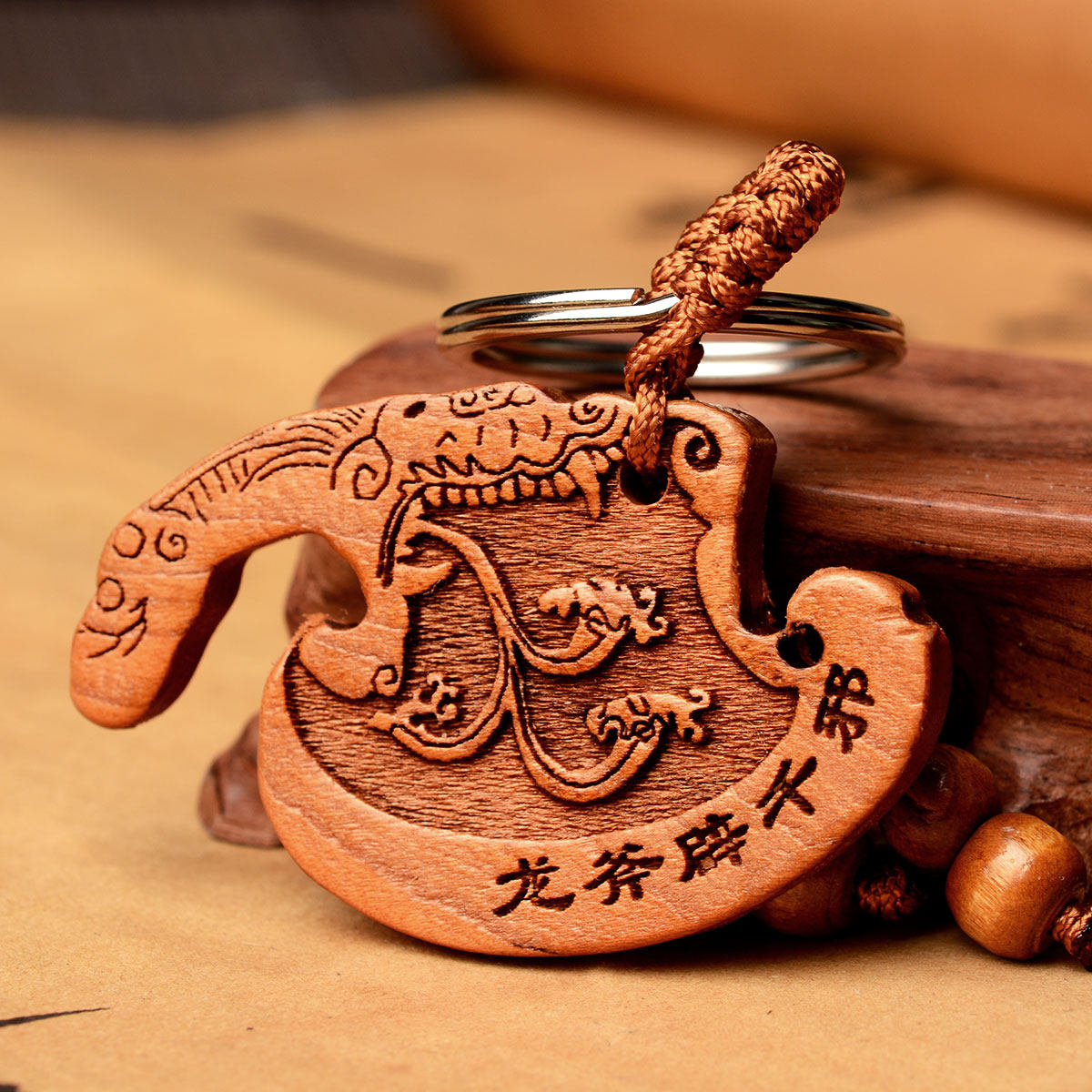 风水阁桃木斧子钥匙扣挂件K10452
