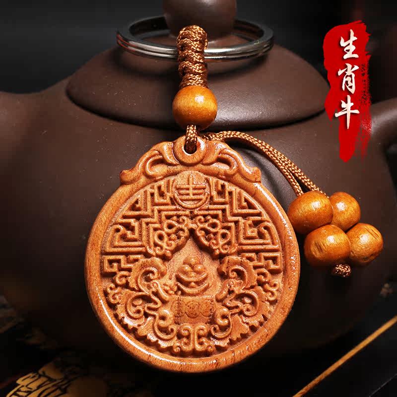 福缘阁生肖牛桃木钥匙扣挂饰000995牛