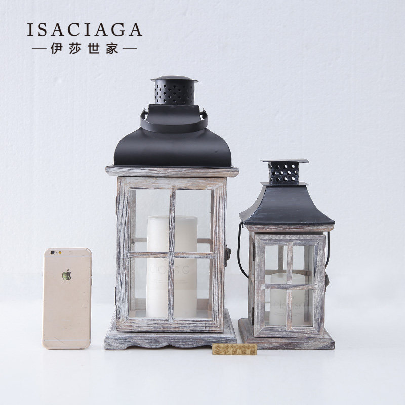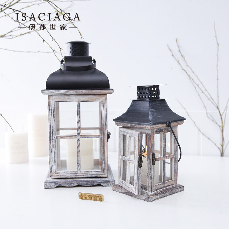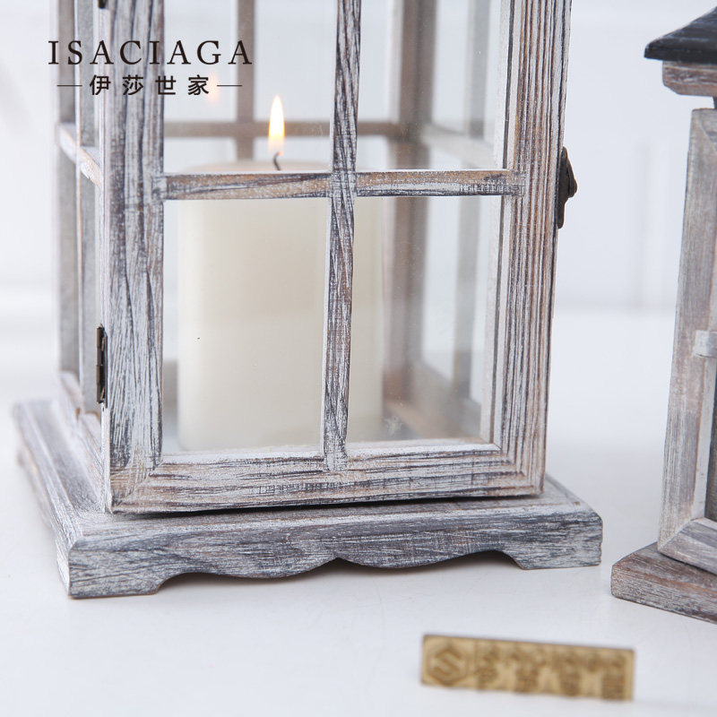 伊莎世家美式乡村玻璃木制烛台BJ046163