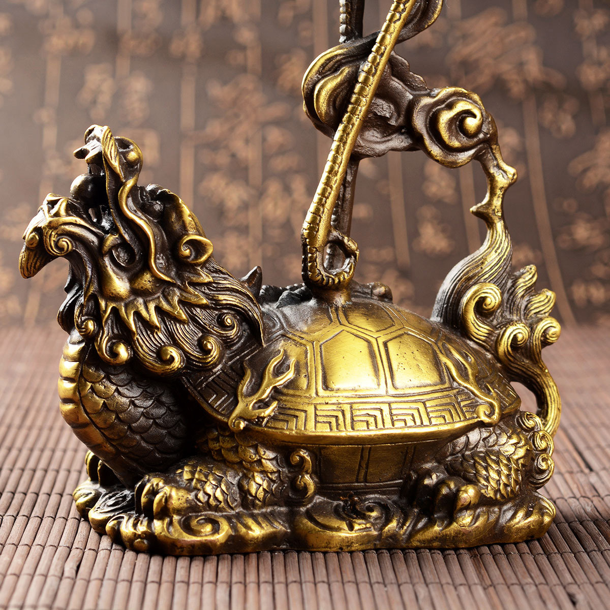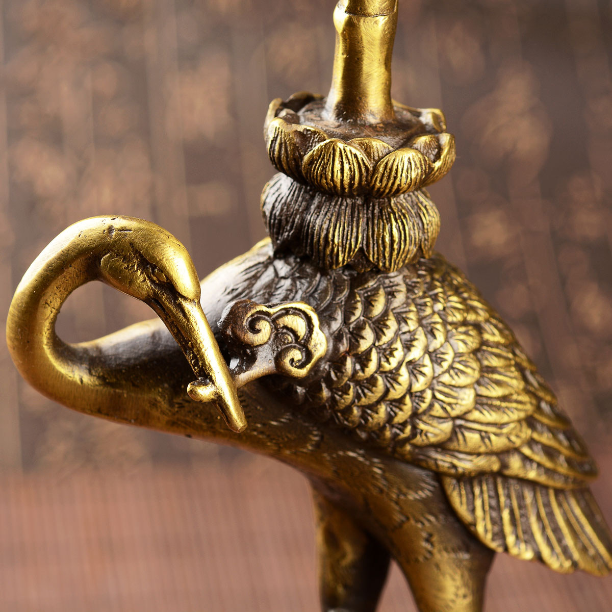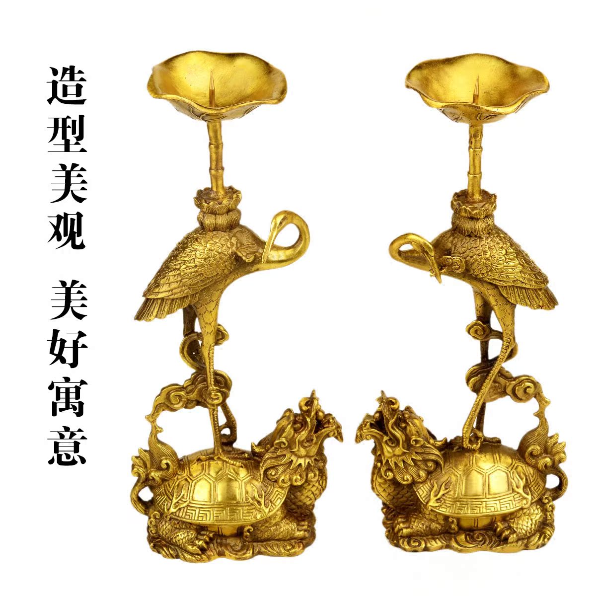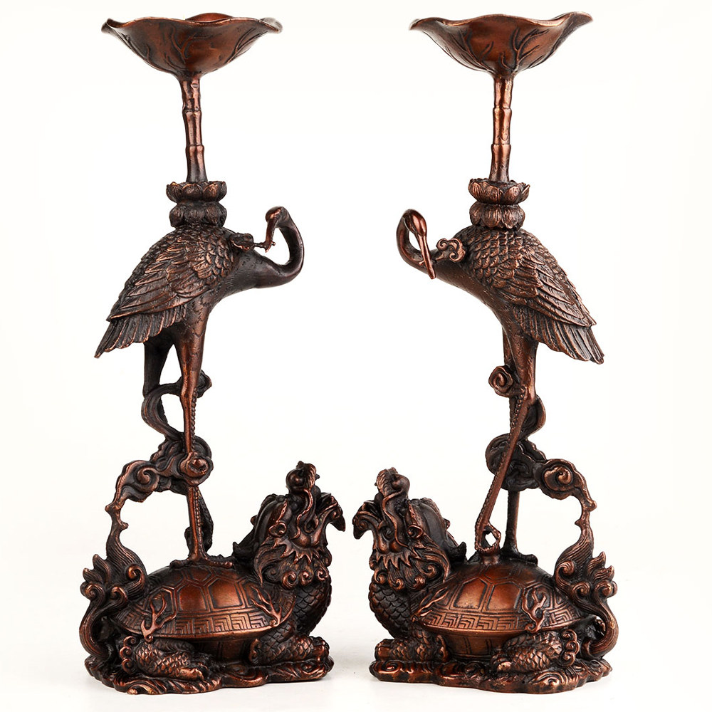 风水阁开光风水纯铜龟鹤烛台13016