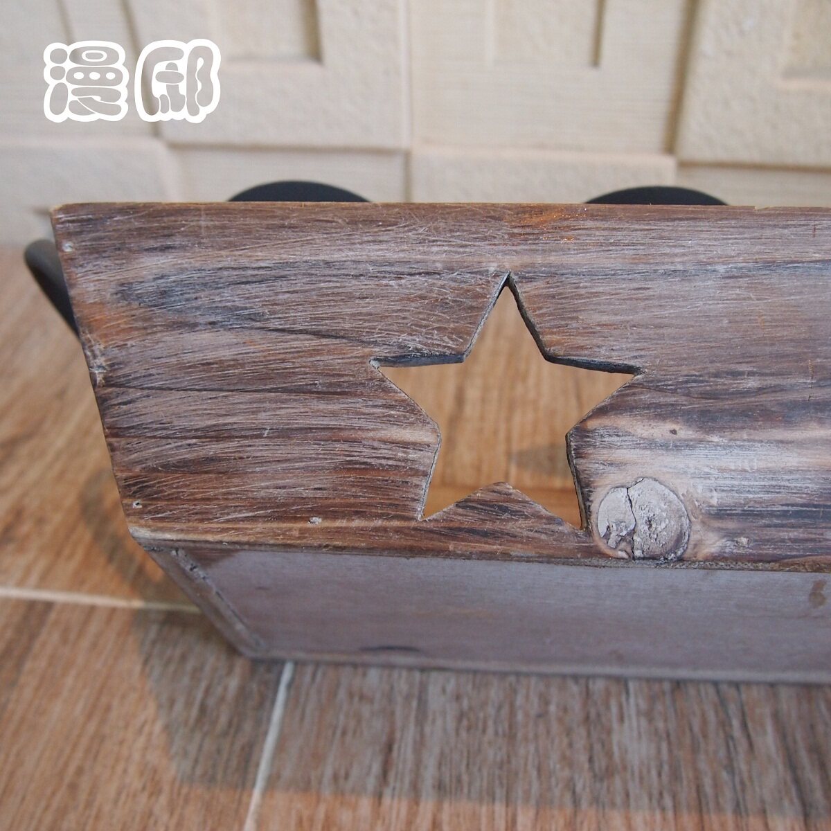 漫邸美式特色木质手提木铁艺托盘蜡烛台L12005