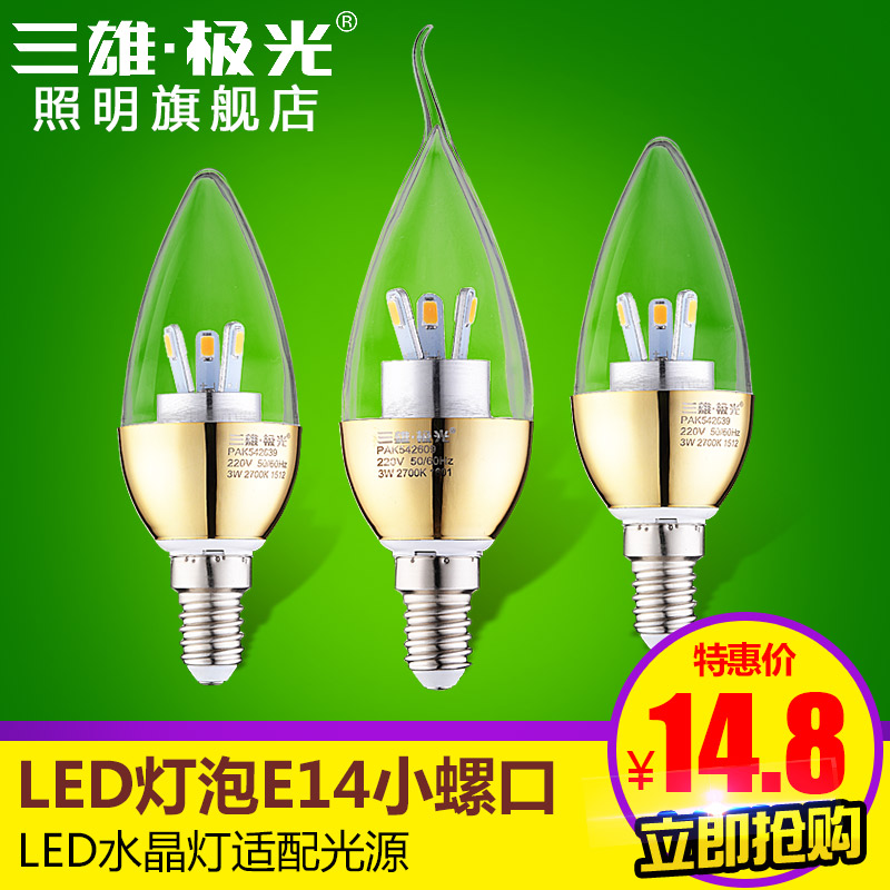 三雄极光金色led蜡烛灯 耀星3W