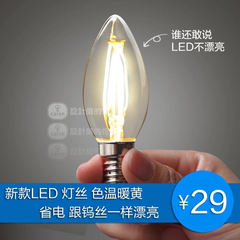 设计师的灯蜡烛拉尾灯泡E14LED灯丝2w