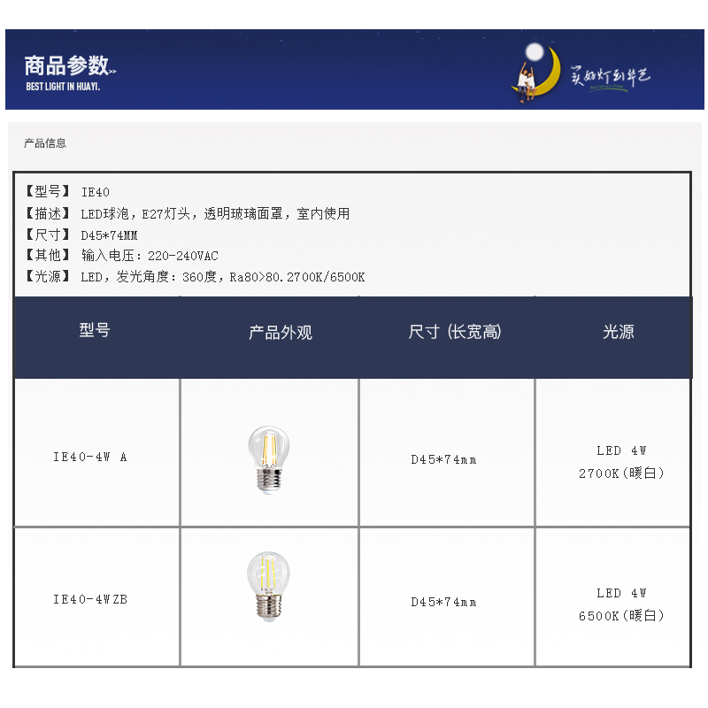 华艺灯饰超亮照明led蜡烛灯泡IE40