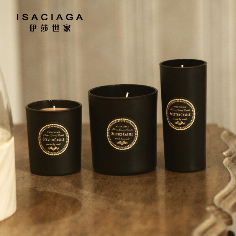 伊莎世家磨砂质感黑色徽章创意烛杯BJ014533
