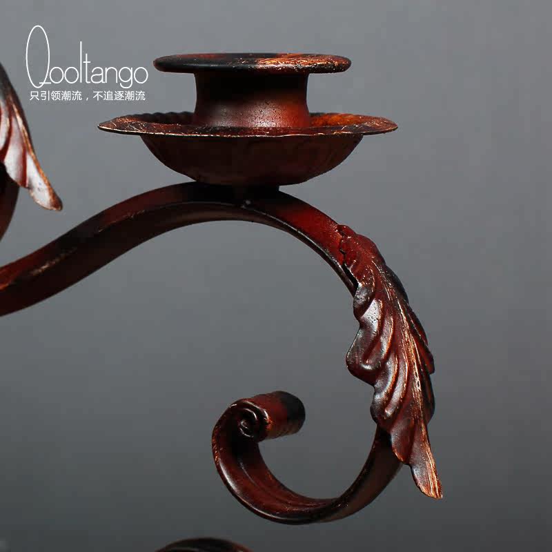 酷坦哥新古典欧式花纹仿旧铁艺5头蜡烛台D49080009