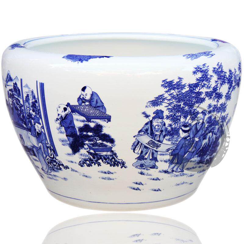 欢畅景德镇陶瓷器竹林七贤金鱼缸yg25