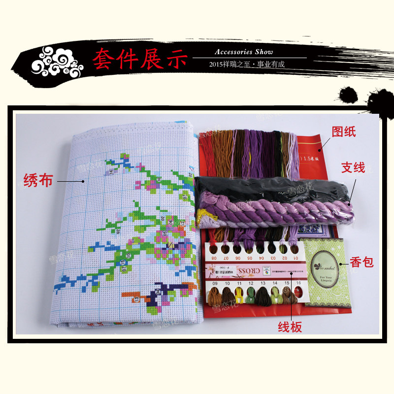 雪恋花印花家和万事兴十字绣