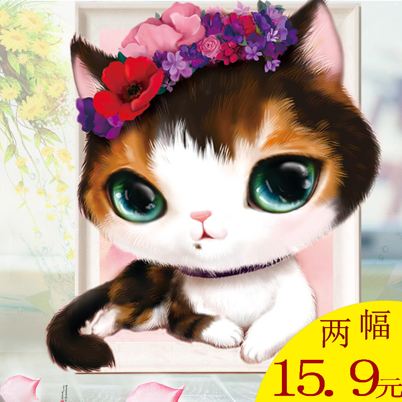 英伦情调小猫卡通5d钻石画