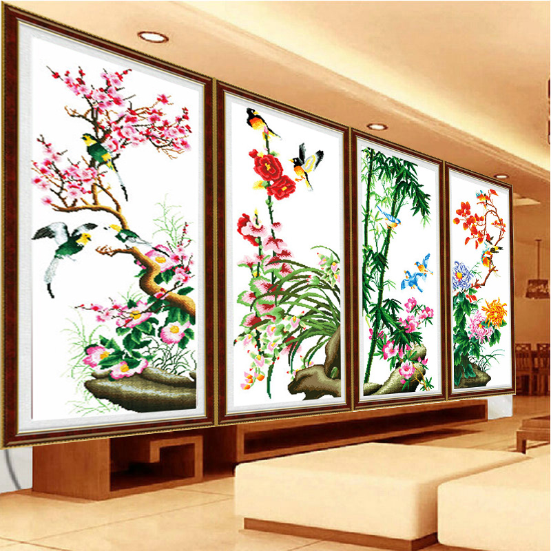 美吖梅兰竹菊十字绣9448