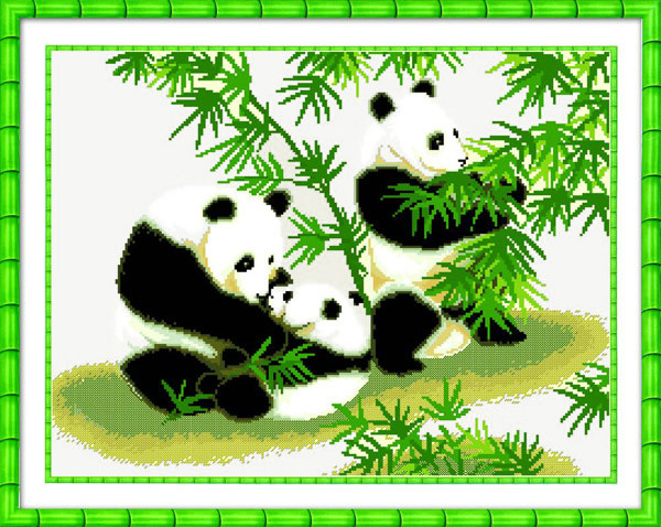 玉纤手熊猫竹子图十字绣780547