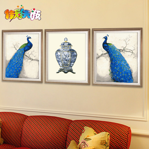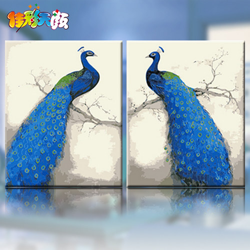 佳彩天颜大幅手绘装饰画蓝色孔雀