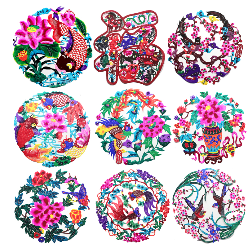 覃孟斋陕西手工彩色剪纸画装jz1002