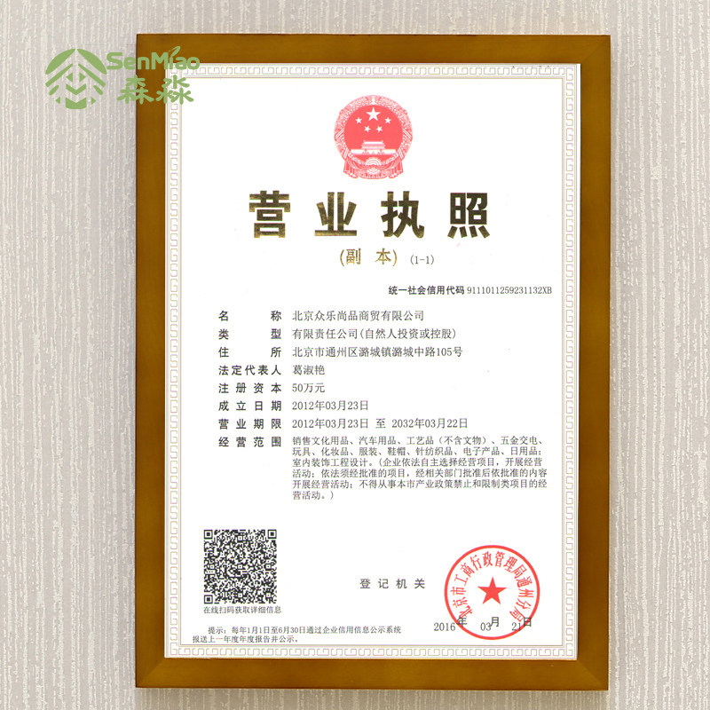 森淼实木营业执照框HSZ-1