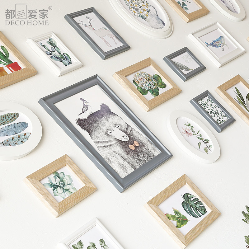 都多爱家实木北欧照片墙相框DSN20椭圆蓝本白