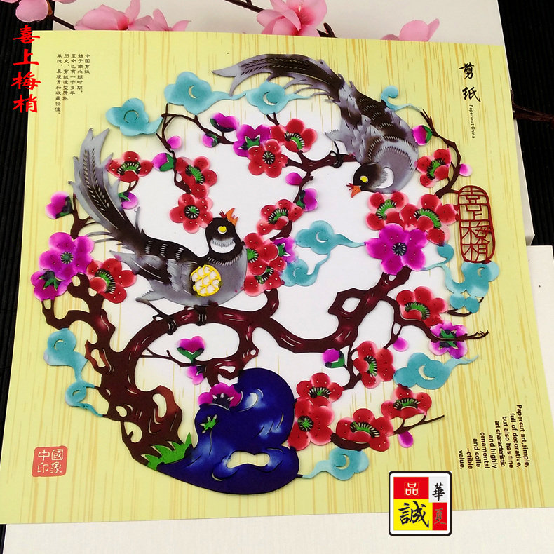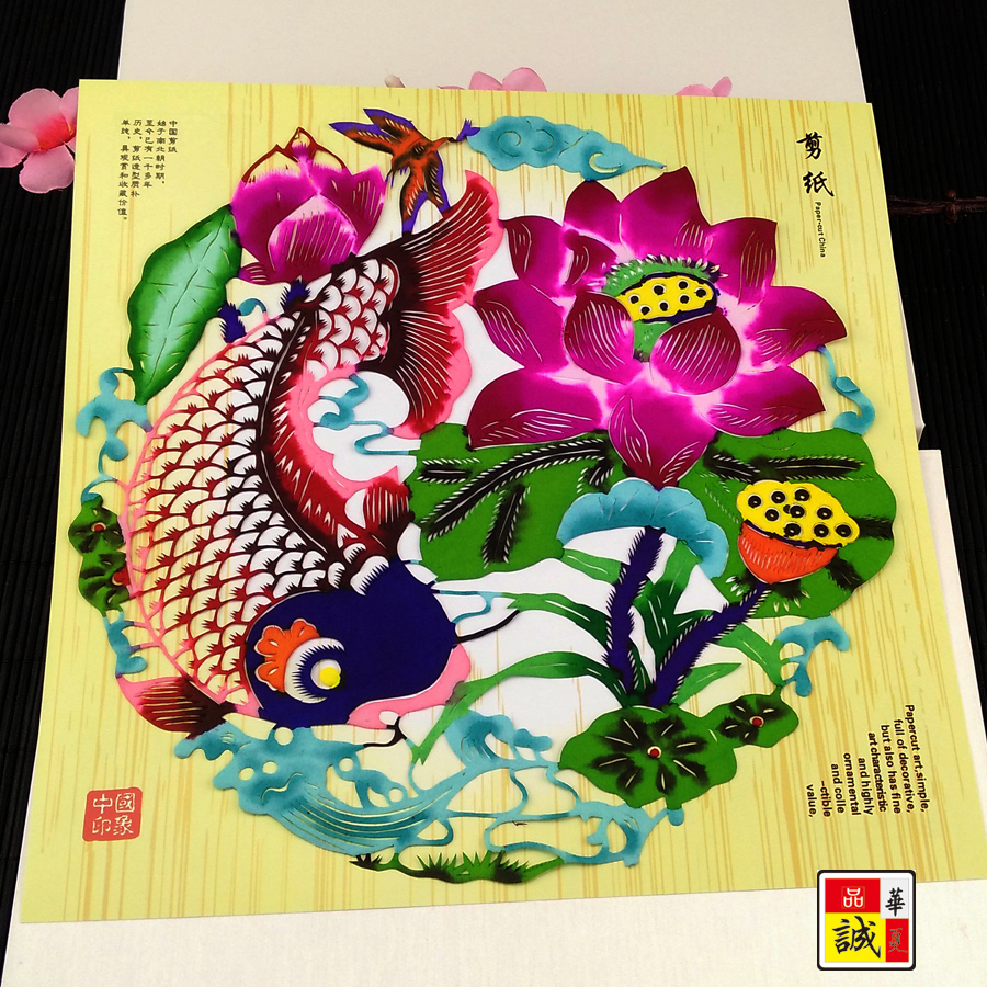 品诚华夏剪纸京剧脸谱彩色剪纸卡中英文相框JZ D