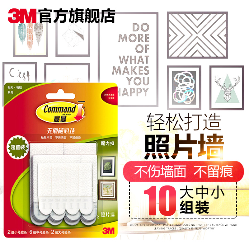 3m高曼无痕挂钩强力不粘钩相框高曼魔力扣超值装