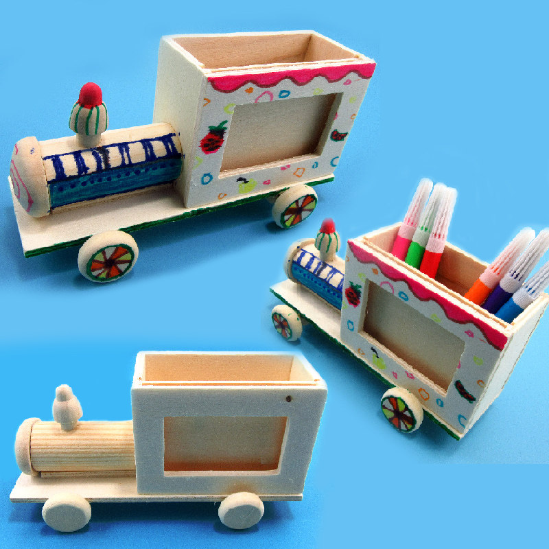希宝白坯木质飞机轮船火车笔筒相框木