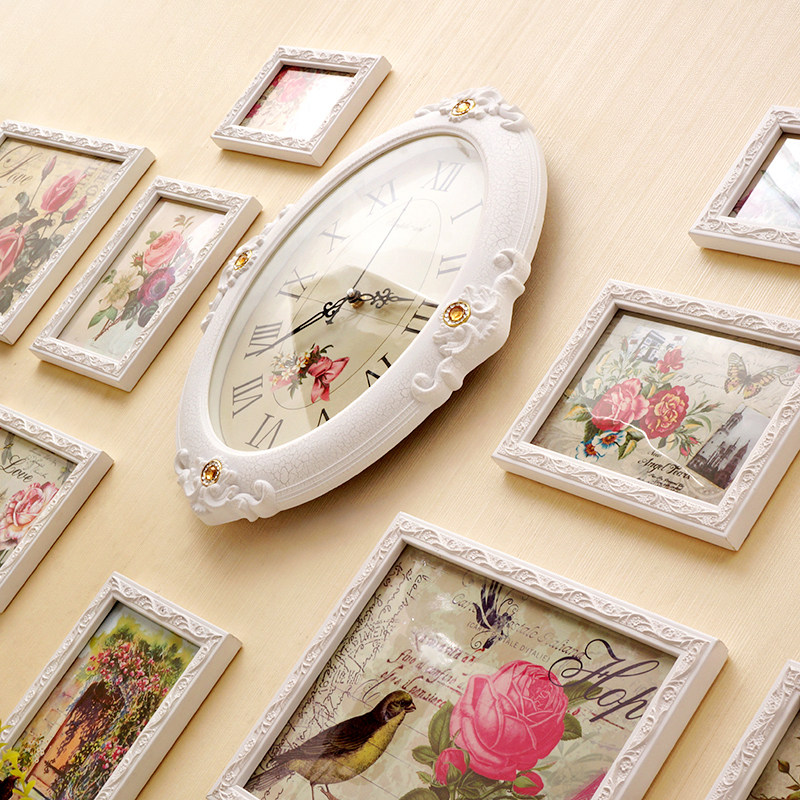 森图亚照片墙挂钟欧式相框ZPQ016照片墙钟表