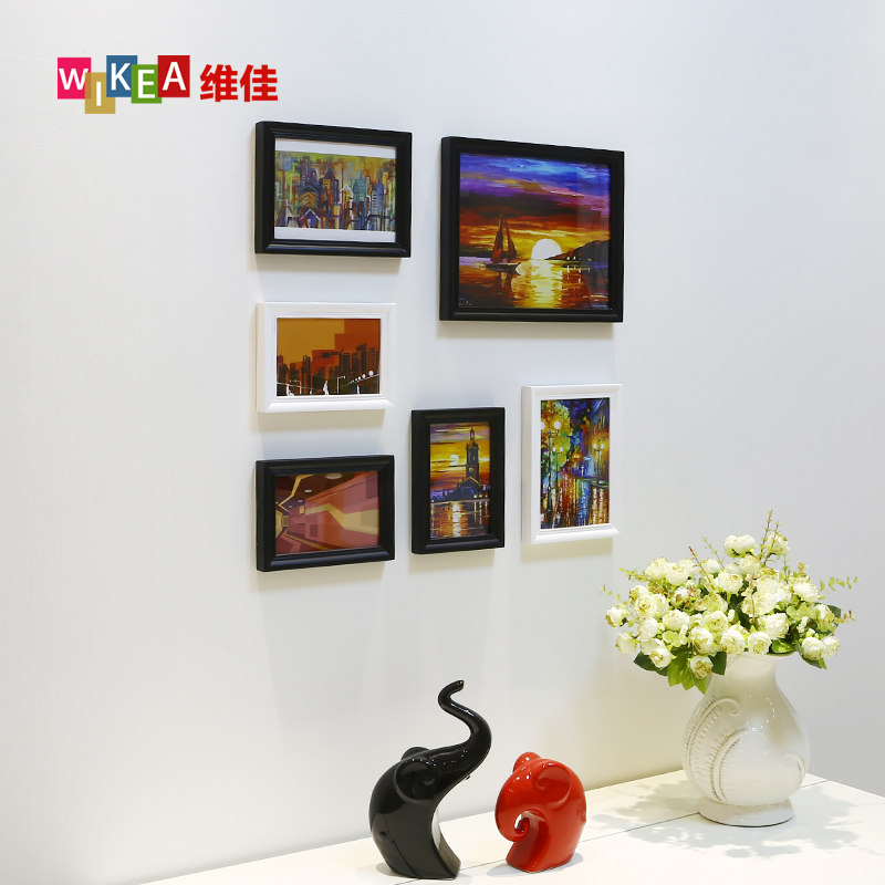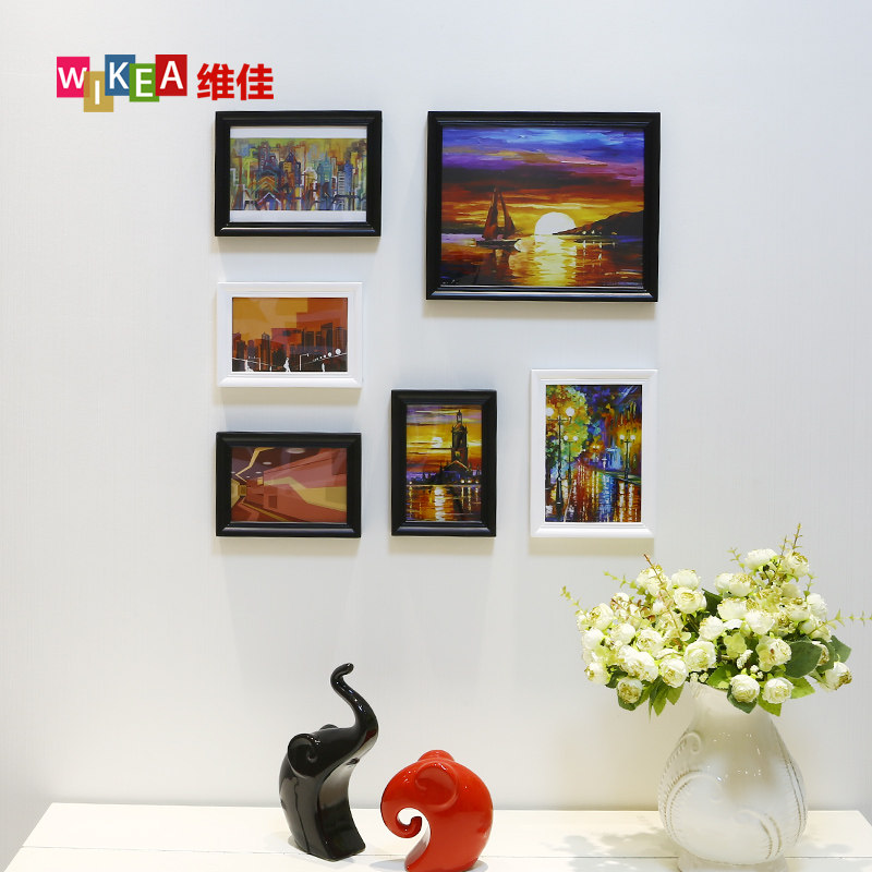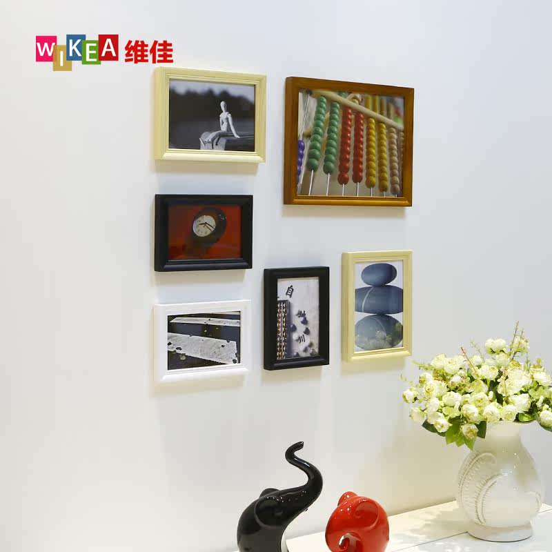 维佳框业6框实木欧式简约照片墙小墙面相框F6