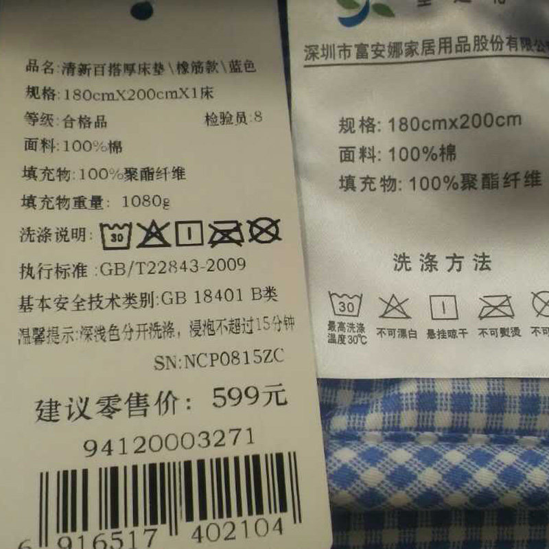 富安娜家纺圣之花纯棉褥子床垫94120003232