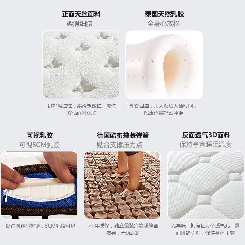 珀兰床垫5cm天然乳胶海绵弹簧席梦思床垫103C