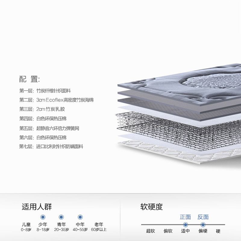 如恩软硬适中竹炭乳胶防螨床垫CD008