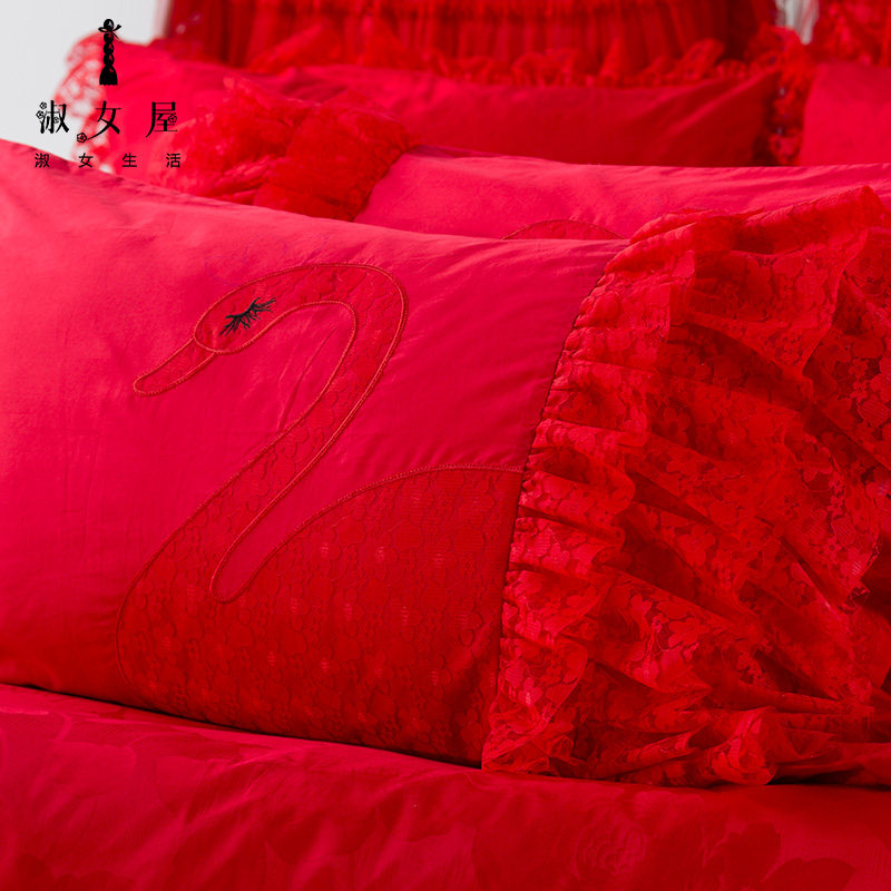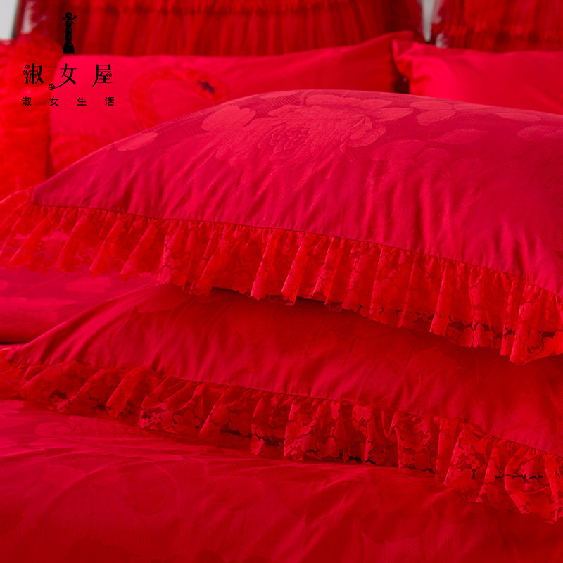 淑女屋床品经典提花全棉大红婚庆JADBAHL02
