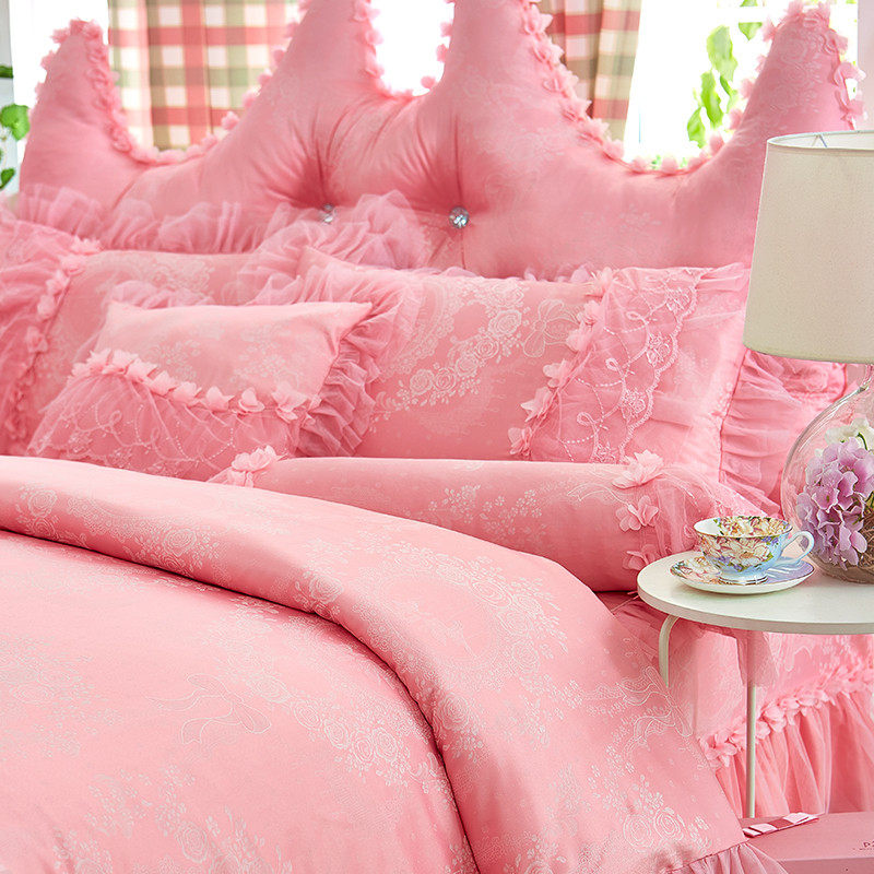 秋思贡缎提花公主床品蕾丝床裙四件套5858987
