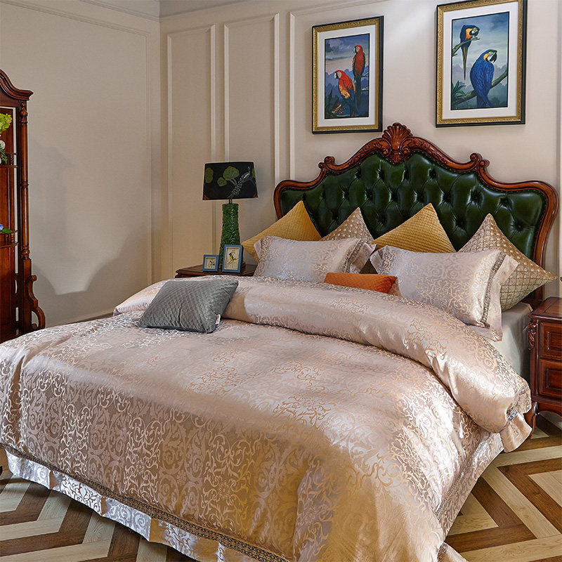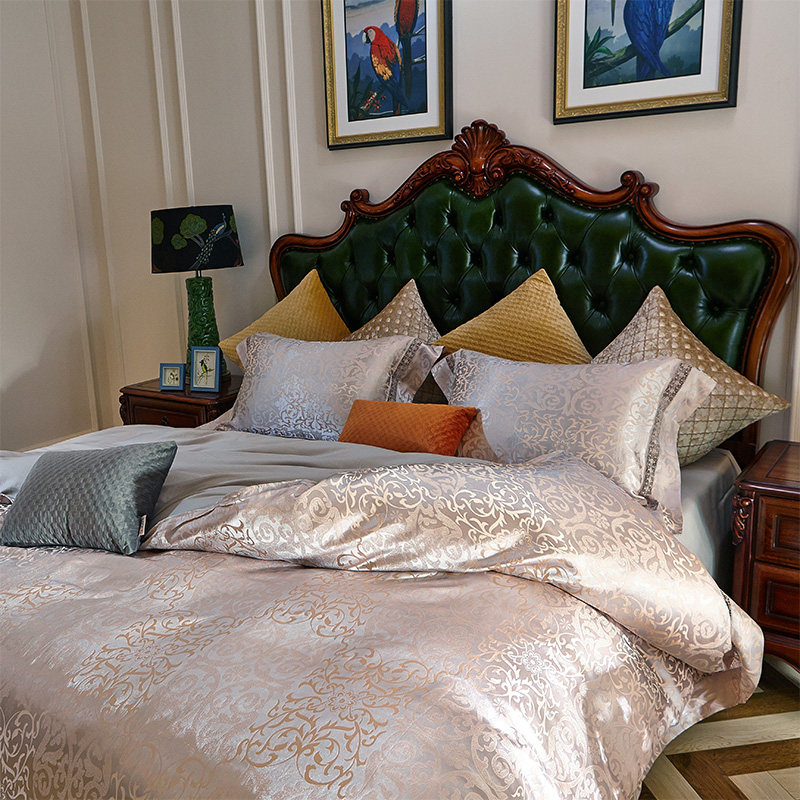 清悠居家纺高档欧式贡缎提花床上四件套QYJ-灰10