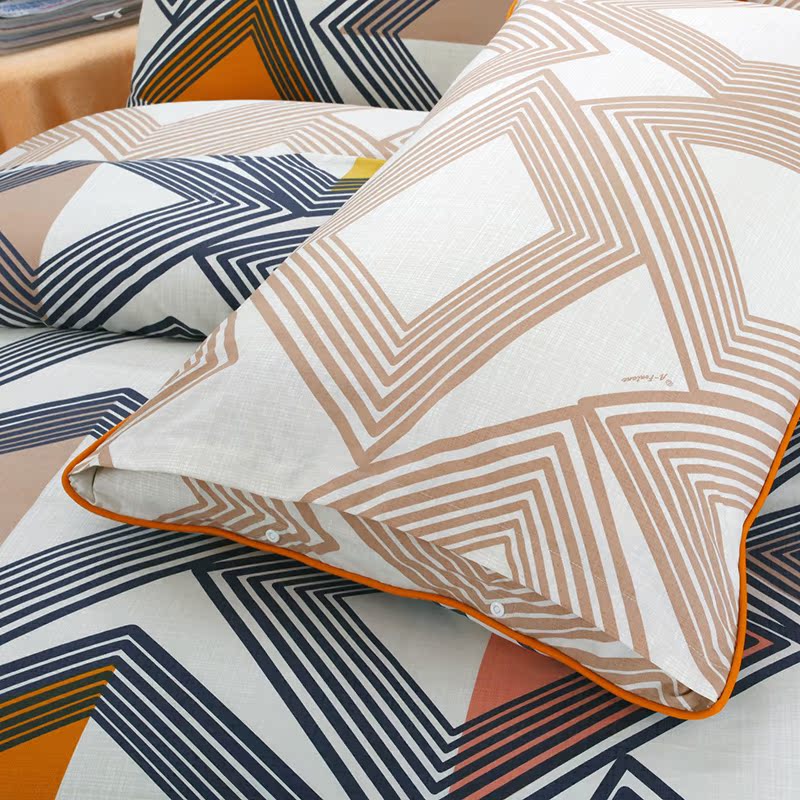 雅芳婷全棉精梳棉简约几何床笠式纯四件套新51316