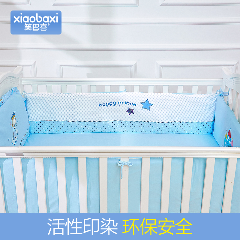 笑巴喜婴儿床围宝宝床上用品套件针织床品九件套