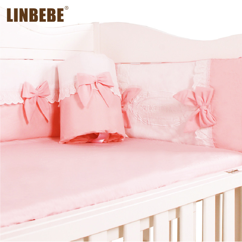 霖贝儿纯棉婴儿床上用品套件蝴蝶结床品三件套