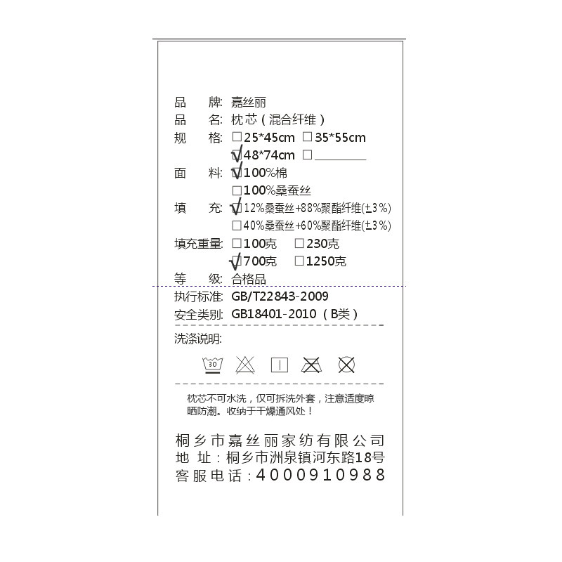 嘉丝丽桑蚕丝枕头CSZ3