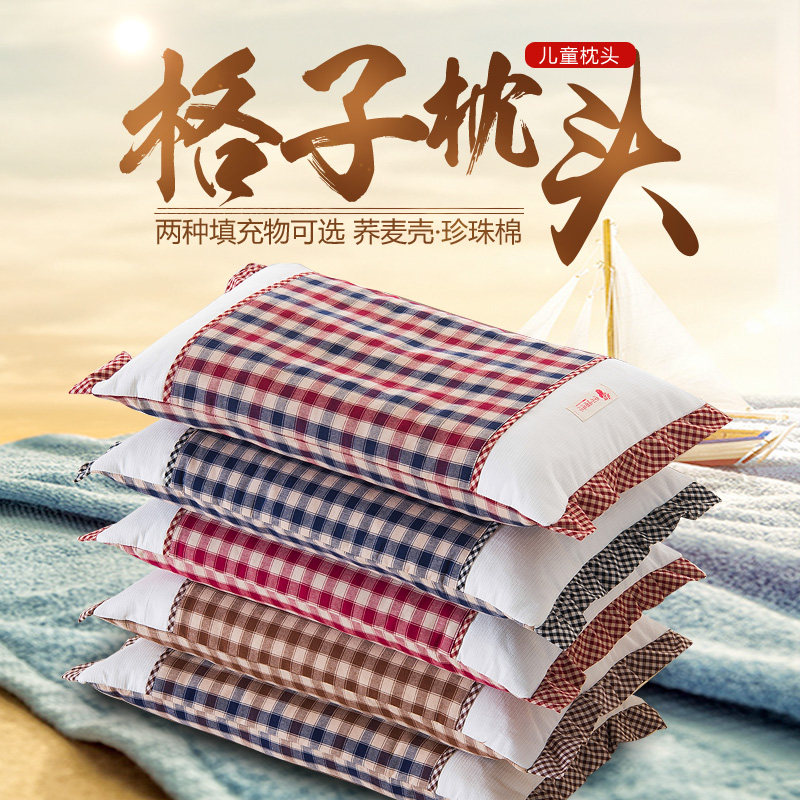 琴岛全棉韩式格子荞麦壳枕头ERT-GD68