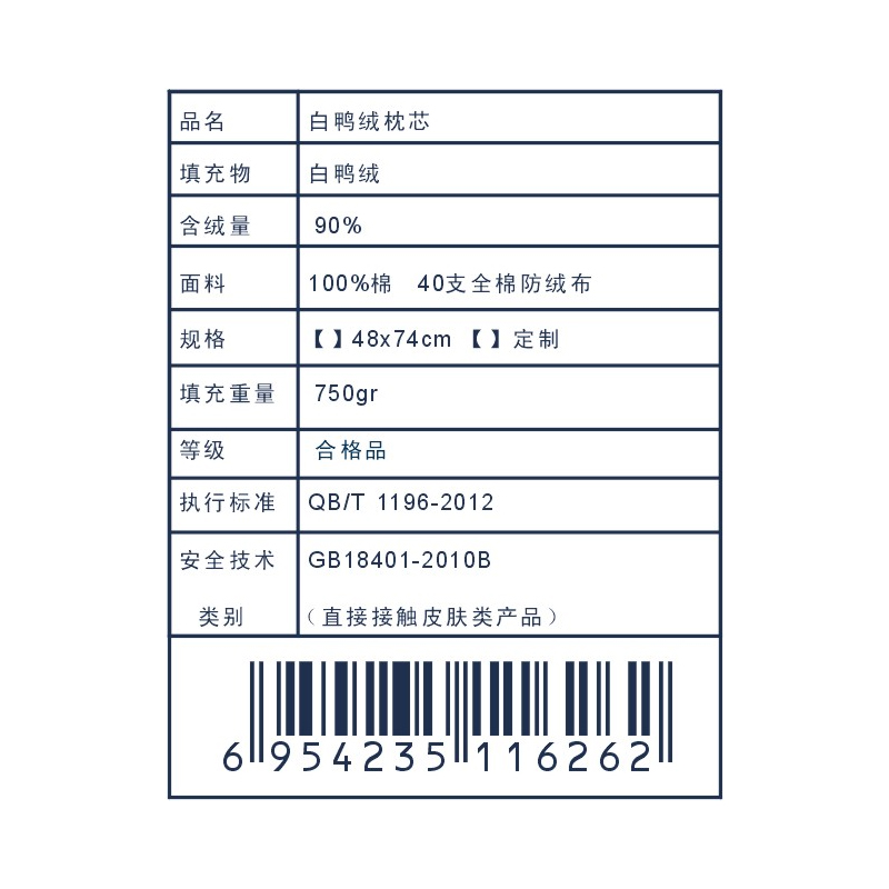 贝斯家纺bedtex羽绒枕芯YRZ95Y