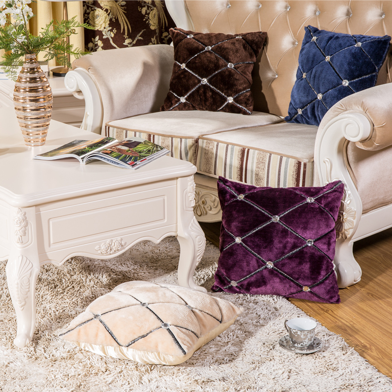 凯斯黛尔欧式间奢华抱枕毛绒大钻枕套ks943