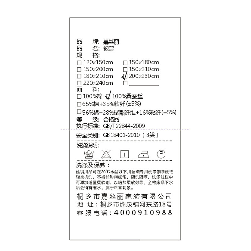 嘉丝丽真丝被套桑蚕丝被套ZSBT-5
