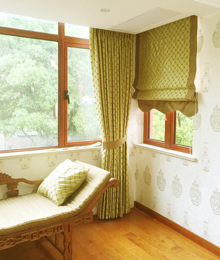 圣奇尼真丝绣花窗帘床品艾可湖绿色