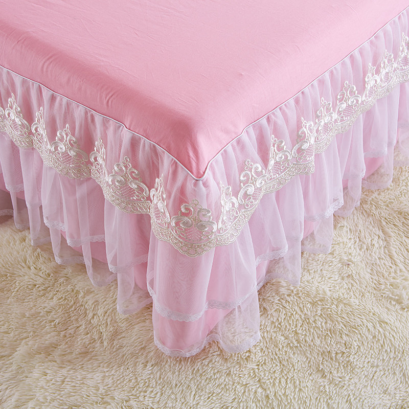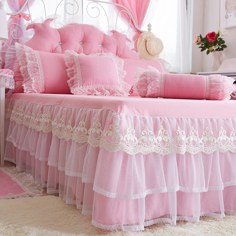 月夜猫粉色婚纱蕾丝公主床套zangmei-3
