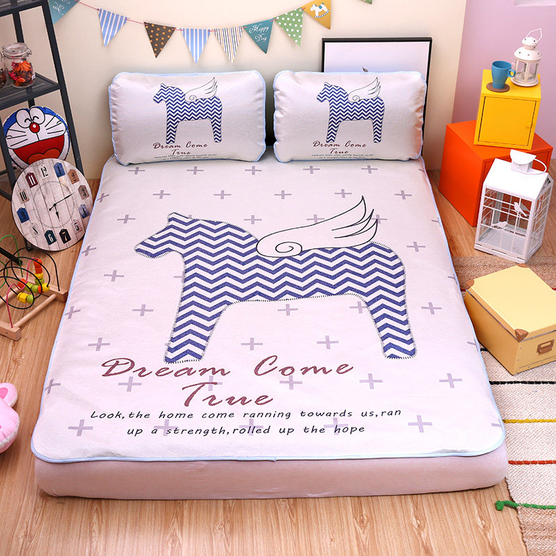 月夜猫卡通冰丝凉席三件套ZZZ