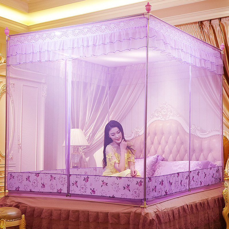 水星家纺不锈钢宫廷方顶三开门落地蚊帐