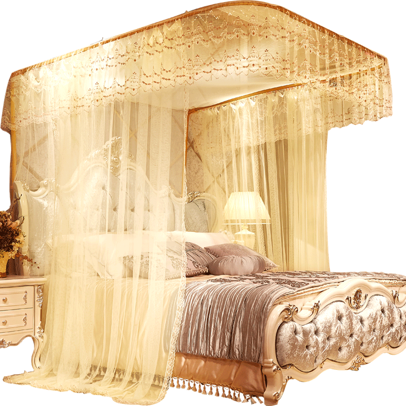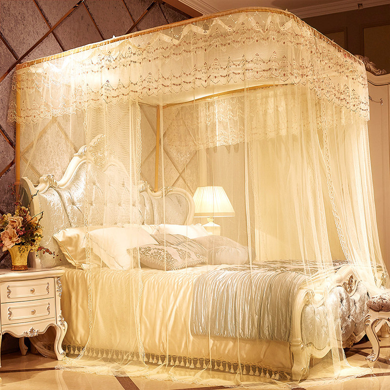 水星家纺不锈钢宫廷方顶三开门落地蚊帐