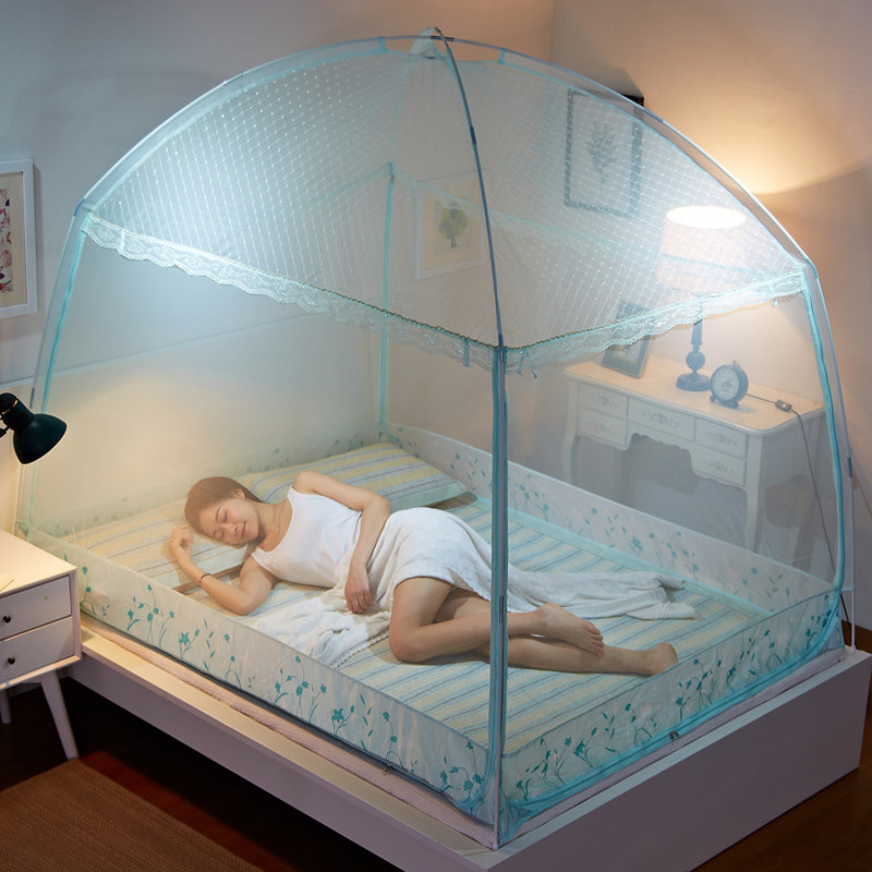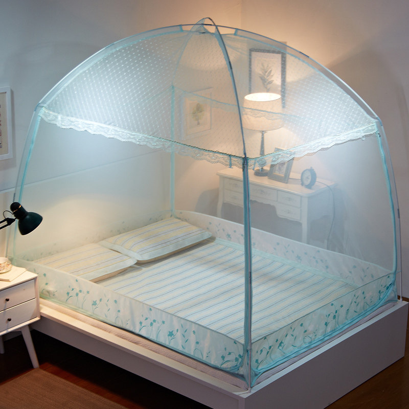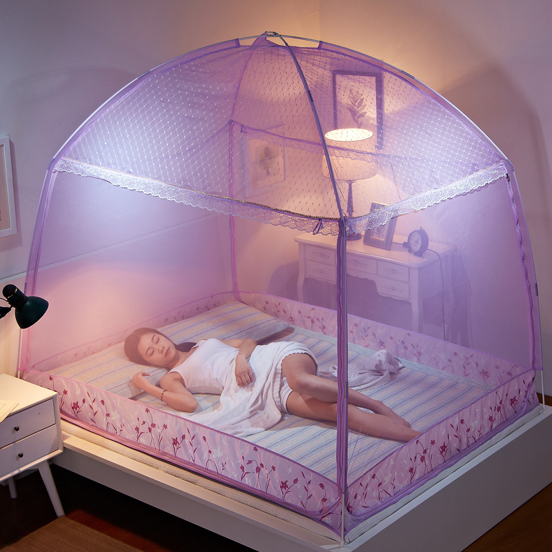 水星家纺不锈钢宫廷方顶三开门落地蚊帐