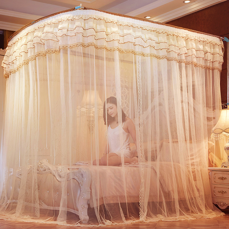 水星家纺不锈钢宫廷方顶三开门落地蚊帐