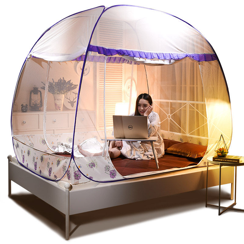 水星家纺不锈钢宫廷方顶三开门落地蚊帐
