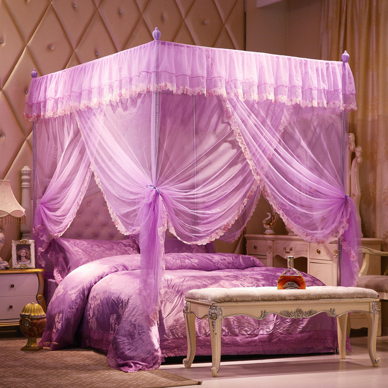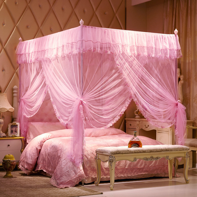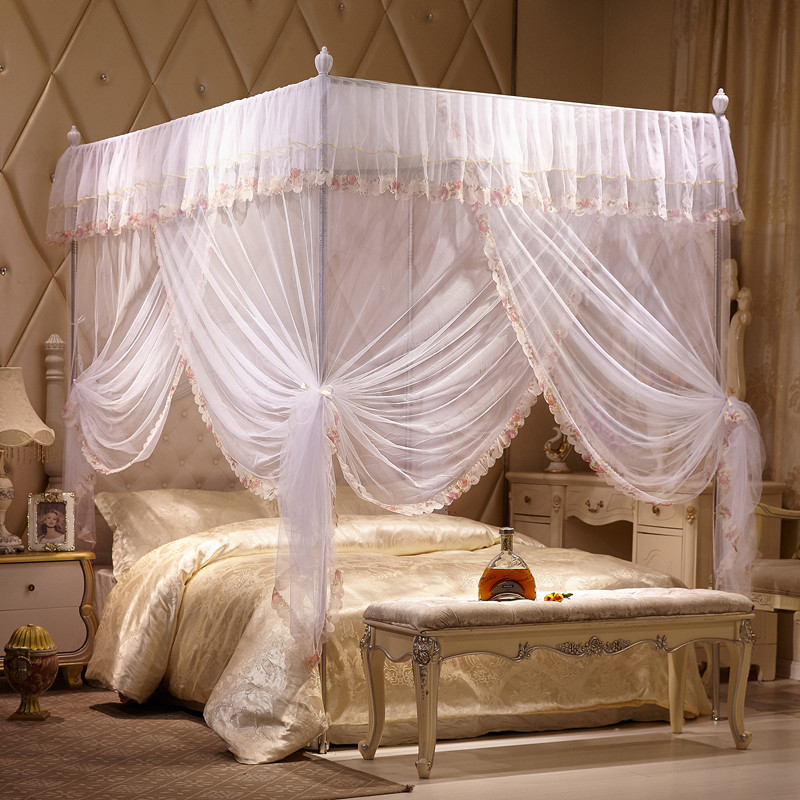 水星家纺不锈钢宫廷方顶三开门落地蚊帐