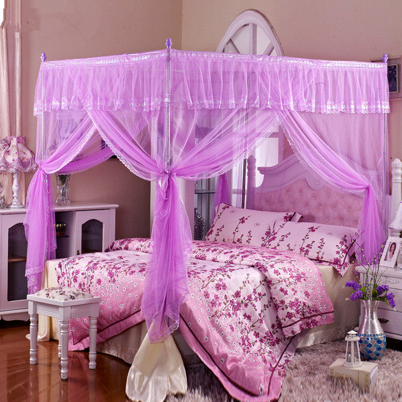 水星家纺不锈钢宫廷方顶三开门落地蚊帐